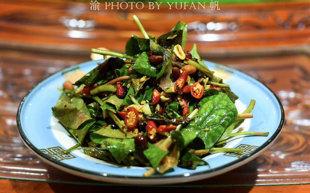 【凉拌折耳叶】折耳根又名鱼腥草,是西南地区的最爱,虽然算不上什么高档的名菜,但渝帆看到这道菜却有一种看到家乡味的感觉,据说这是从四川引入新疆的,因味独特,已成开都河的特色菜。