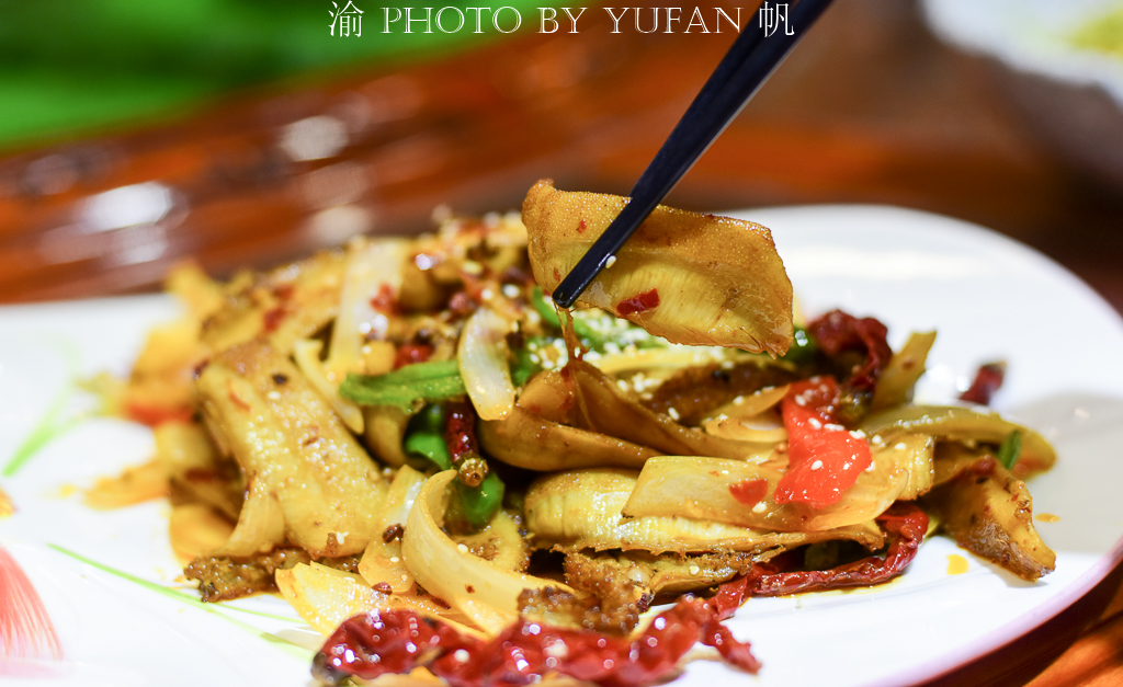 【大漠牛肚】这种菜既具有清真菜的特质,又具有西北菜系味重香浓的烹饪特点,新鲜牛肚,搭配本地的干红线椒,洋葱,大火爆炒出香辣味,其颜色亮丽,脆而不硬,香辣开胃。