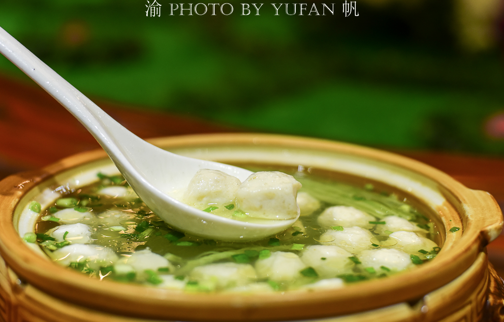【野生自制鱼丸】是采用博斯腾湖野生草鱼,据大厨介绍,做的时候要先把野生草鱼制成鱼茸,加葱、姜、料酒、蛋清,搅打上劲,入水制成鱼丸。其汤鲜味美,多食不腻。