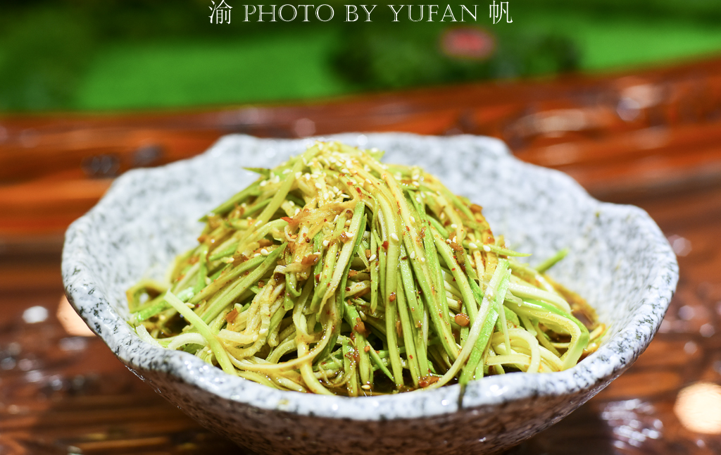 【捞汁葫芦瓜丝】葫芦瓜是大众喜欢吃的食物,平常我们多用来炒肉,这种通过檫丝、凉水清洗、凉拌、浇制捞汁的做法颇有特色,口味清爽,与满桌的大鱼大肉相配,更能减少牛的油腻感。