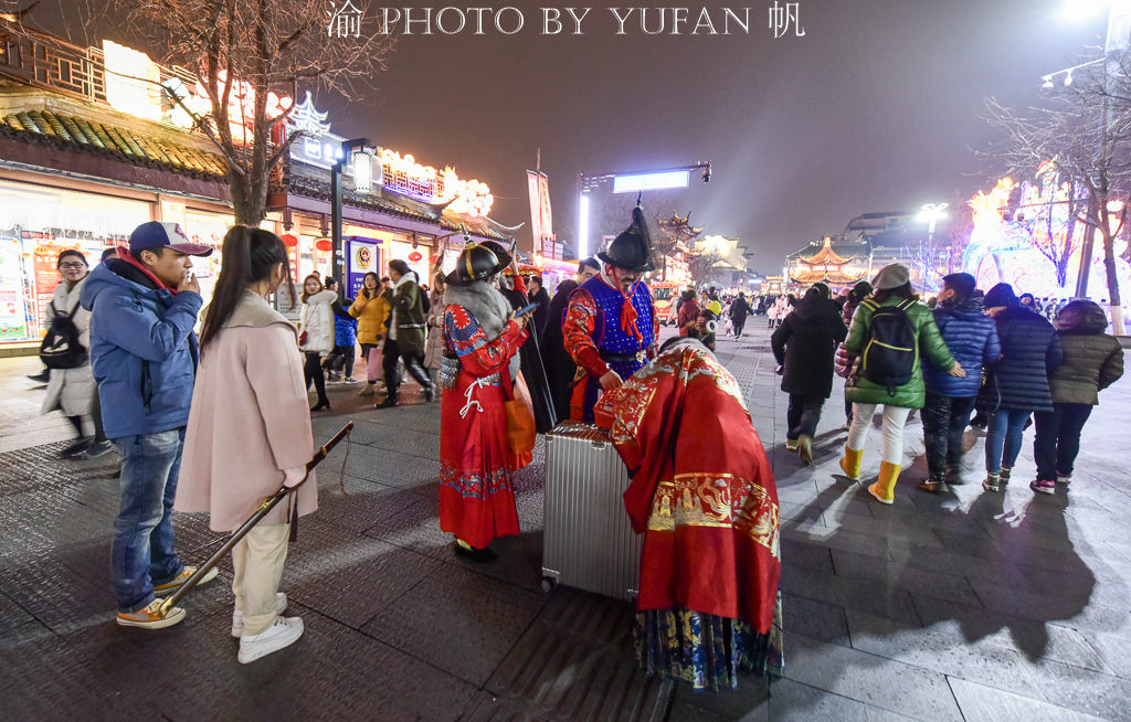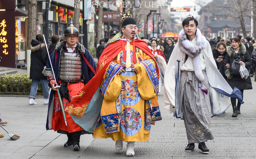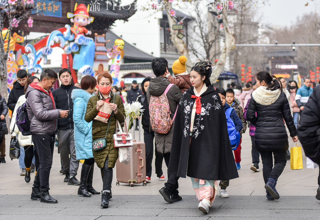在夫子庙秦淮风光带游玩期间,给我们印象深刻的除了厚重的文化、修久的历史、诱人的美食,还有随处可见的古装(或者称其为汉服),并不像其它地方的人穿汉服是为了拍照,在夫子庙一带的南京人似乎穿汉服是一种享受,这种服装穿着让他们觉得舒服。