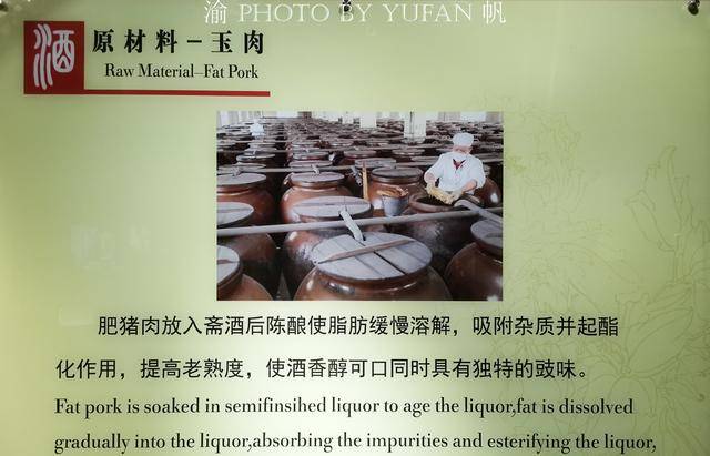 经过无数次的试验,他们得出的方法是:每个酒坛放酒40斤,放入肥肉4斤,浸渍三个月,使脂肪慢慢溶解,与酒起作用,提高其老熟度。经过肥肉陈酿后,将酒倒入大缸或大池中,自然沉淀20天以上。酒中肥肉仍存于坛中,可再放新酒泡浸。以此法陈酿的酒,绵甜柔和,酒体甘冽丰满,酒液清澈,不再混浊。皆因猪肉能吸附杂质,泡在酒中能与酒液融合形成独特酒香,并醇化酒体。