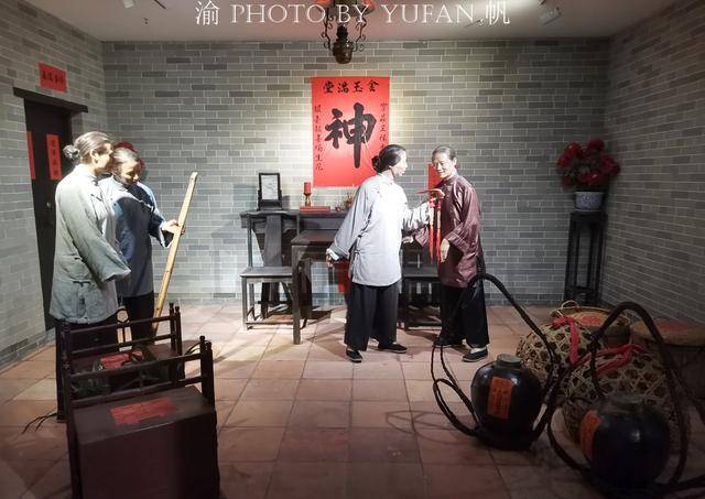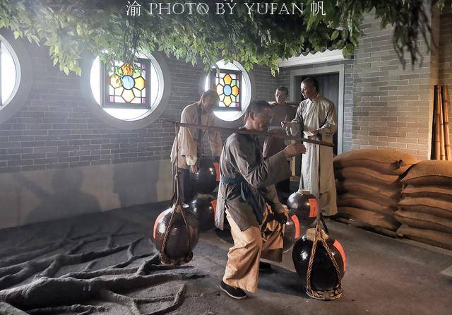 博物馆有很多还原佛山人生活情景的蜡像:东平河畔,大榕树下,工人们卸米、装酒,一片熙熙攘攘的繁忙景象;“广德堂”成药铺内,医师正用药材与米酒浸泡制成的药酒给病人治疗跌打损伤;龙窑边上,两名陶工正在小桌前以酒佐餐,一杯下肚顿觉疲惫的身躯变得轻松爽快……从这些情景中,我们可以看出,佛山与酒的密切关系,以及佛山酒文化的厚重。