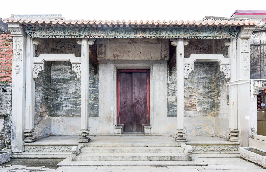 漫步在安堂村的古石板街上,两边像上图这样的老建筑有很多,牌匾已看不太清楚,不过雕梁画栋依然精美,石雕、砖雕、木雕、灰塑古韵犹存,只是大多数都已经大门紧闭,估计也没有了村民居住。