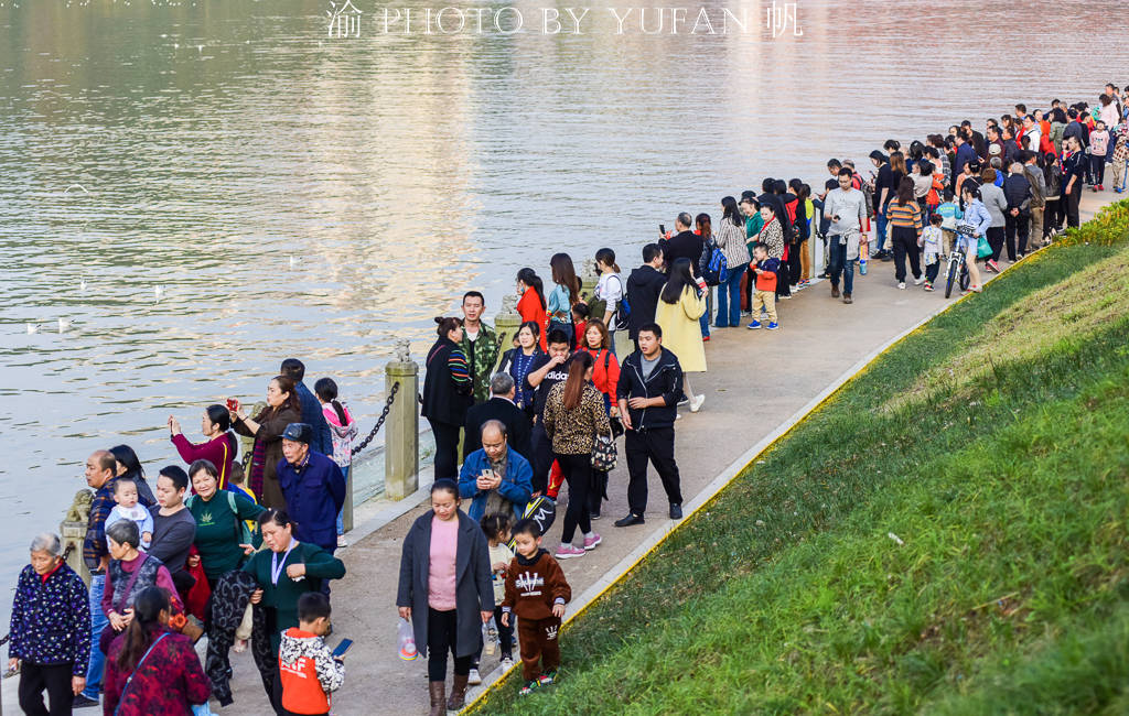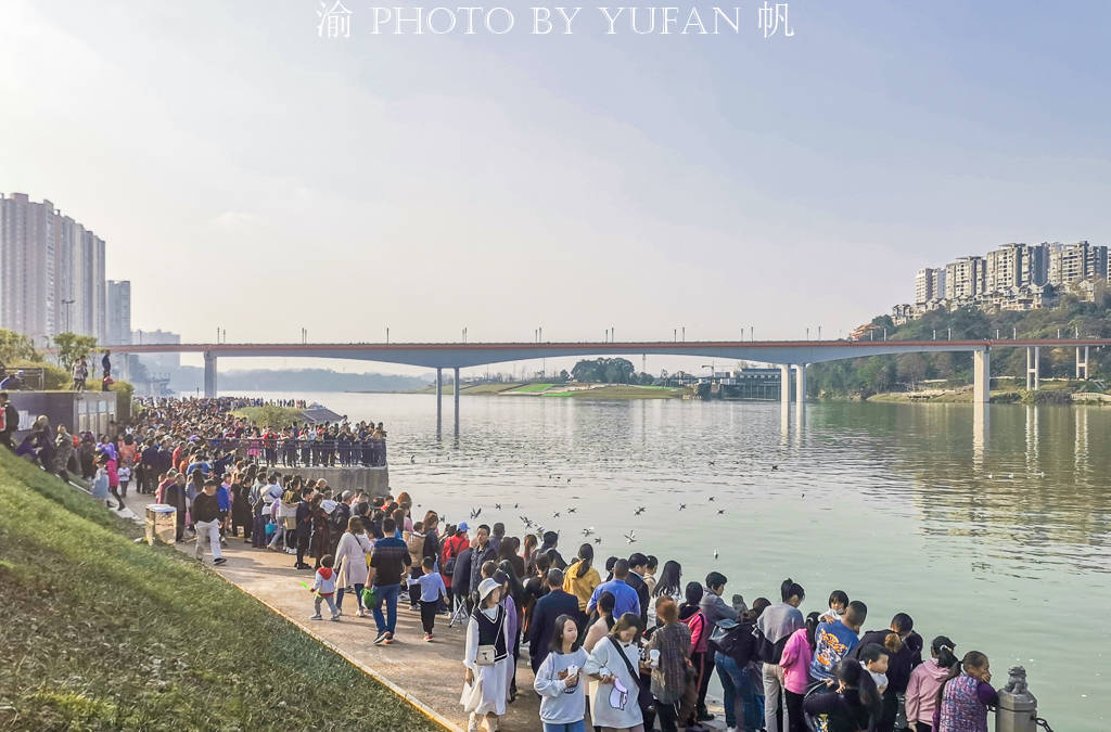 今天天气不错,像渝帆一样特地前来“鸥”遇的市民可不少,整个湿地公园凡是适合观赏的红嘴鸥的位置基本上都没有空位,而且来来往往,络绎不绝。