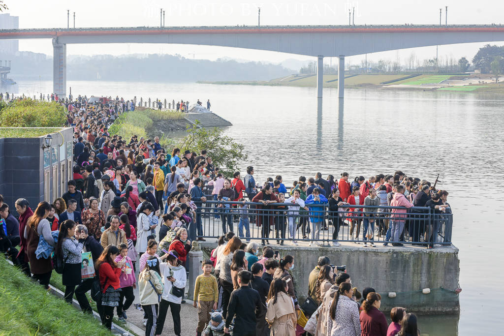 即便是没有红嘴鸥的河段,市民也不少,基本都是全家出动,扶老携幼,摩肩接踵,热闹非凡,这真是难得一见的盛况,估计与划龙舟的时候有得一比。