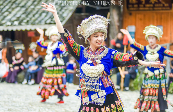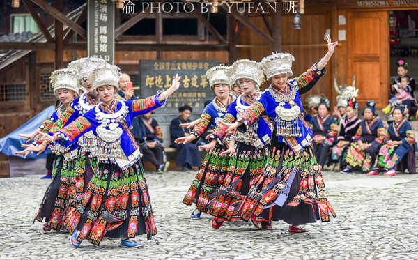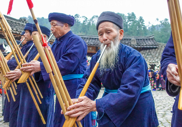 也正是因为这样的原因,所以苗族是一个能歌擅舞的民族,他们会走路便全跳舞,会说话便会唱歌,在村子中央的表演场中,所有的演员均来自村寨,年龄下至呀呀学语的小童,上至满头银发的老翁,他们都能一边吹起芦笙,一边随着旋律翩翩起舞。