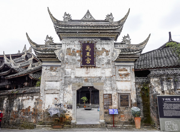 古镇中有不少古建遗存,供奉大禹的禹王宫便是其中之一,禹王宫是老百姓祈求风调雨顺的地方,在禹王宫中庭有一个水景,这个水景的创想即来源于大禹治水福泽万民的故事,意为承天雨露,水润民生。同时,又寓意水是下司存在、发展的本源。