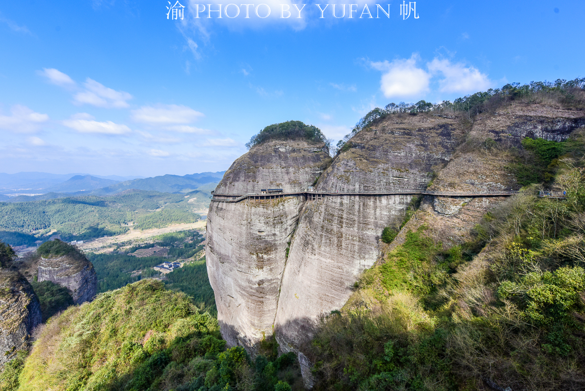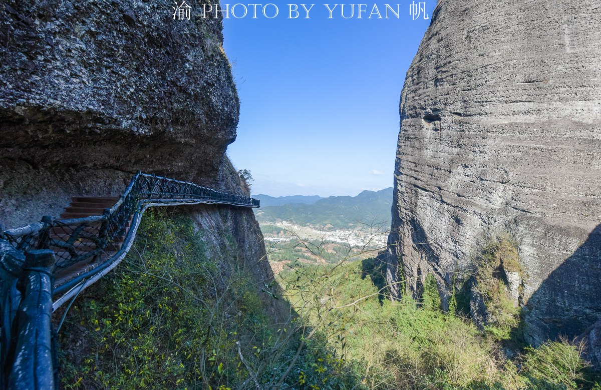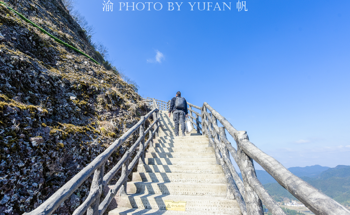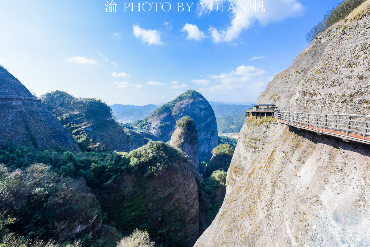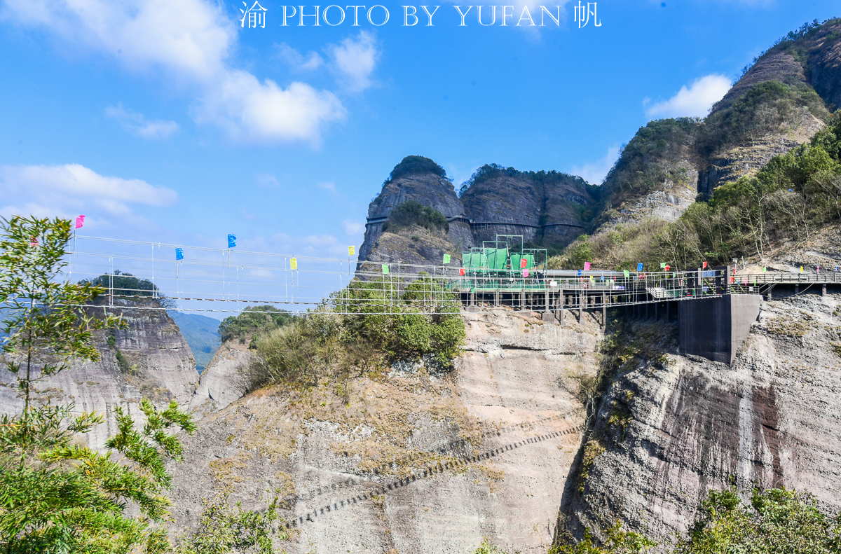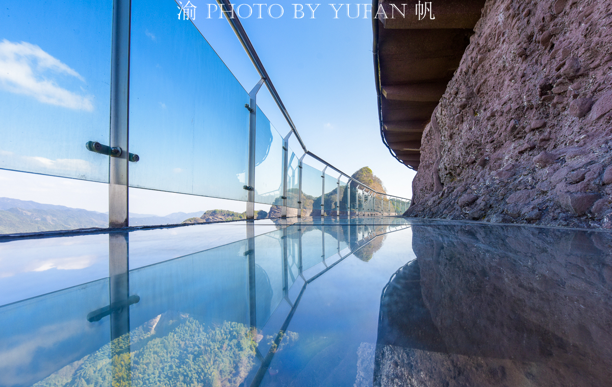 南武当目前没有索道上山,只能徒步攀登,全程走下来约需4个小时,除了上下山的梯道之外,山上基本都是悬挂在绝壁上的栈道,其中还有两段较长的玻璃栈道,上下皆是如刀砍斧劈的绝壁,脚下是万丈深渊,颤颤巍巍、小心翼翼地走在上面,那种惊险刺激的感觉或许只有身临其境方可体会到吧。