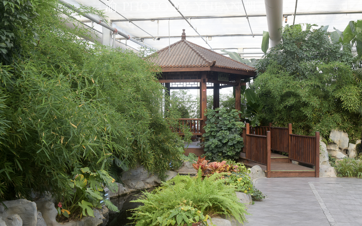 如果逛累了,还可以在里面用餐,餐厅的环境也是小桥流水、亭台楼榭、绿树红花、曲径通幽,一幅江南水乡的模样,与外面的冰天雪地简直是两个世界。