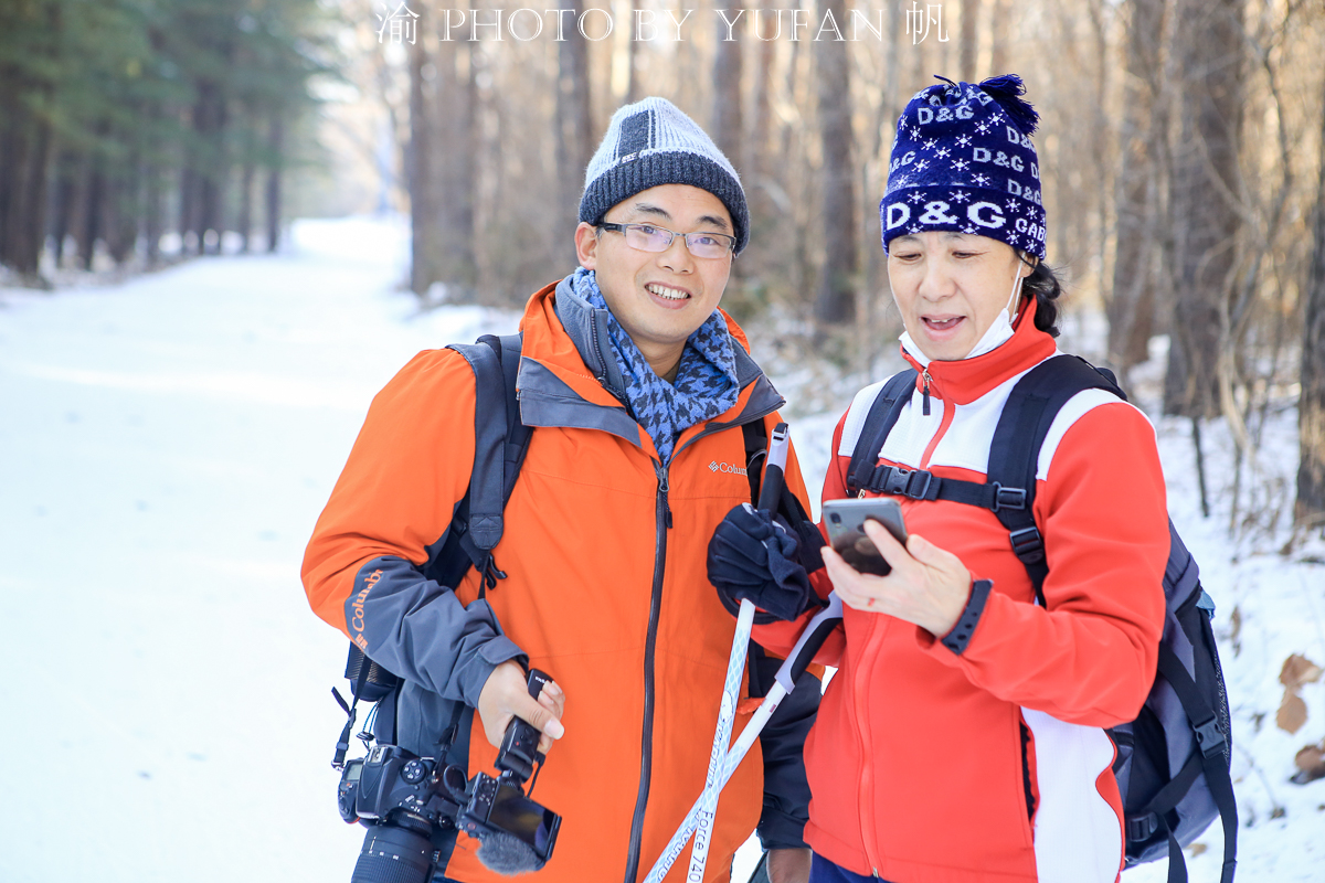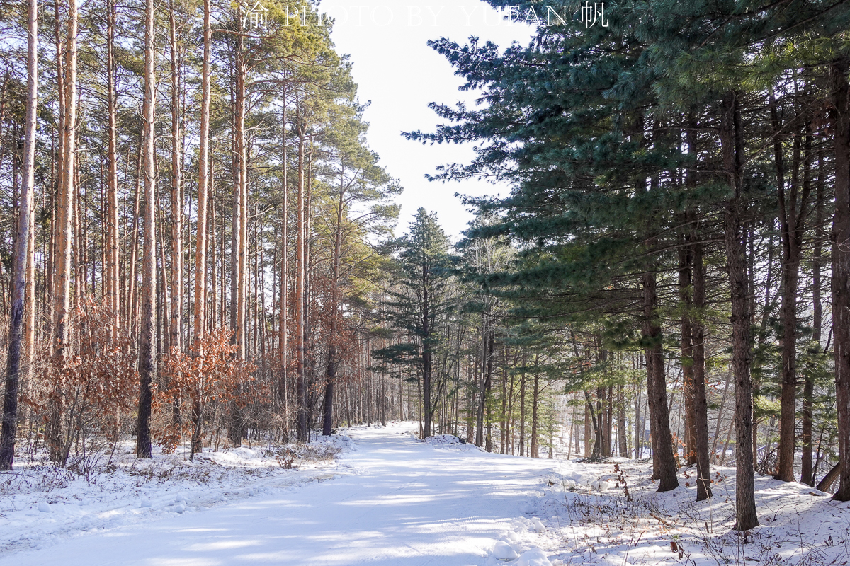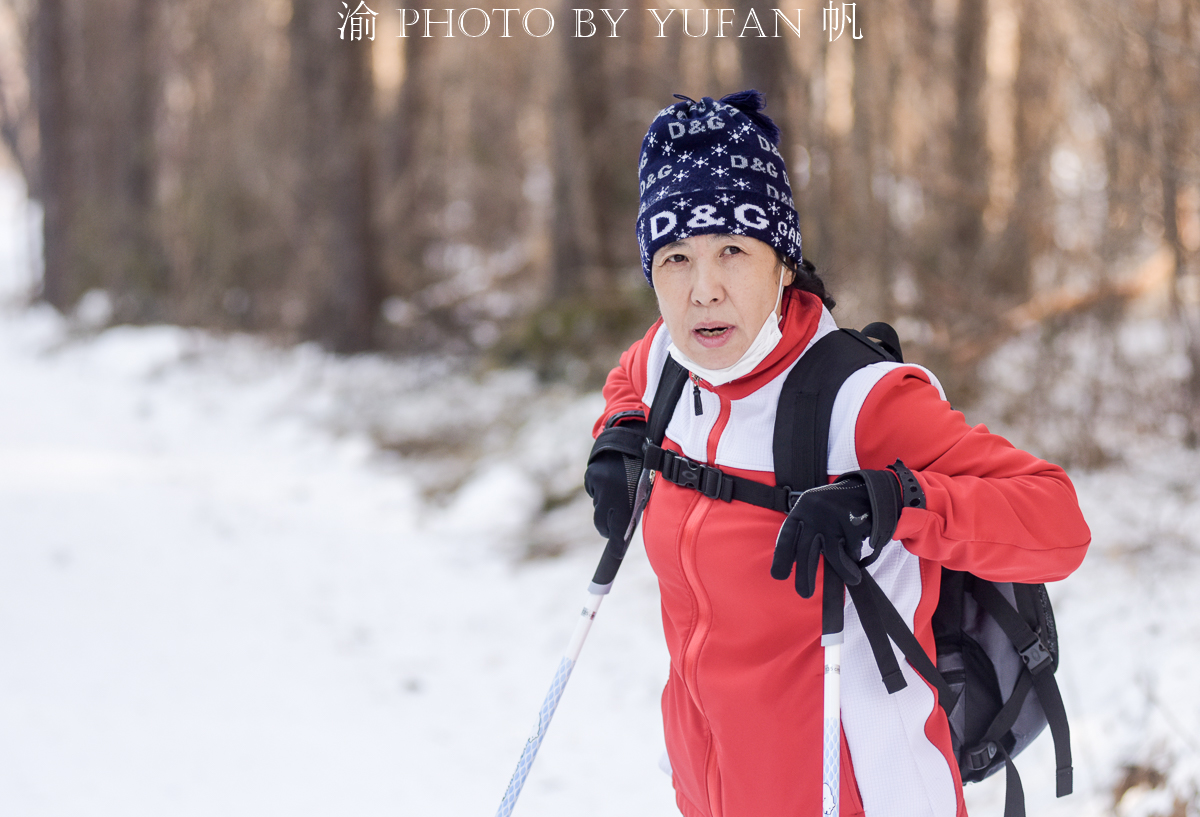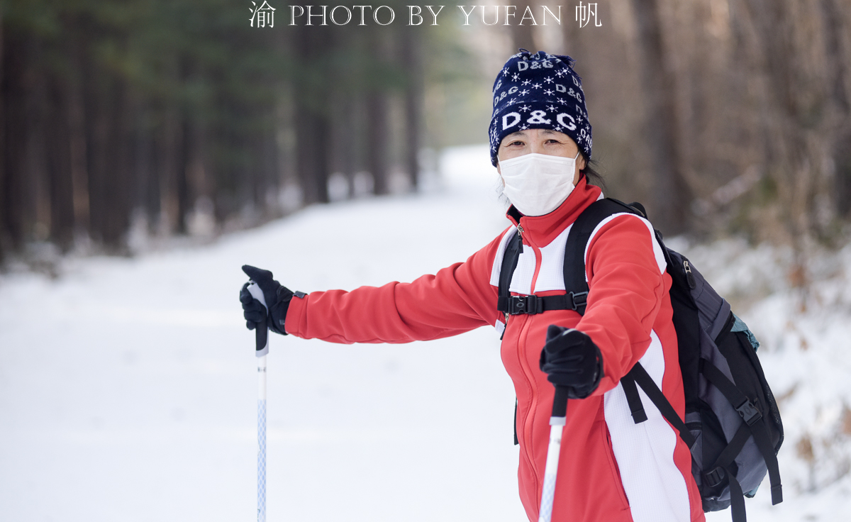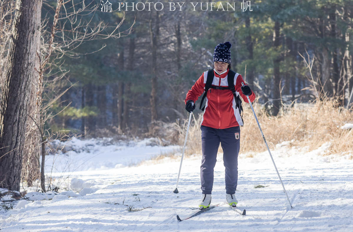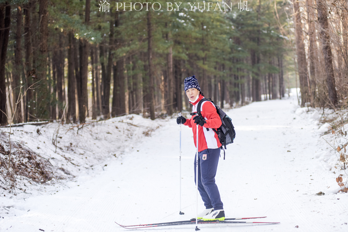 不过我们到来的时候时值中午,上午前来滑雪的游客及来此训练的人员都已经陆续离开,我们漫步在一边是落叶林、一边是四季常青的松木的越野滑雪道上,偶尔才能遇到一位滑雪爱好者路过。在这些滑雪者之中,有一位阿姨来来回回反复多次与我们相遇,于是我上前与她打了招呼,想与她聊上几句,了解一下净月潭滑雪场的情况。
