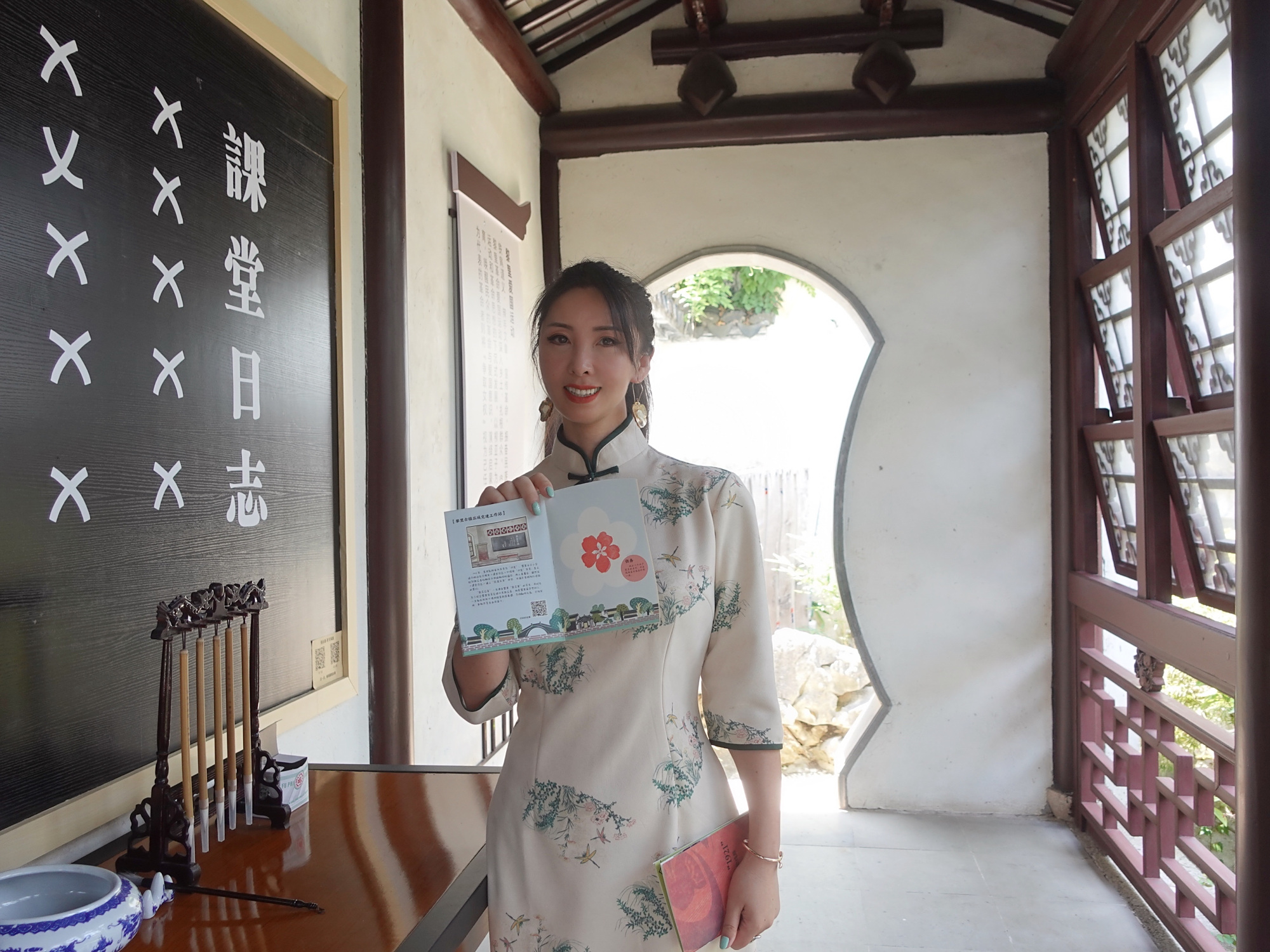 来自上海的美女达人丫丫领取任务后,坐在黎里市河边上的美人靠上,开始仔细了解任务手册上的相关要求,以便制定相关的方案。