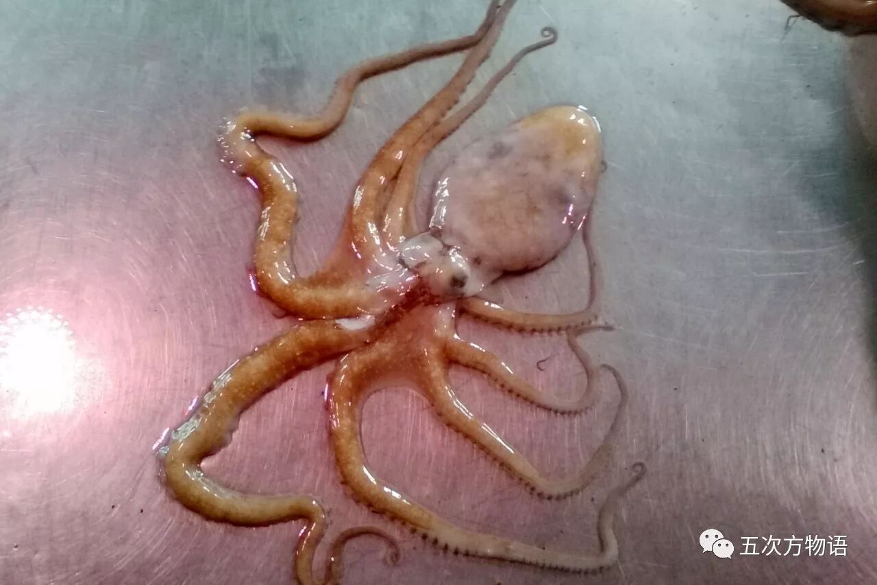 青岛常见的章鱼还有长蛸(Octopus variabilis),比短蛸体型更大,腕足也更长,胴部具明显的灰白色斑。上图中软如烂泥一样的家伙,根据本砖家的判断,很有可能就是长蛸。好吧就这么定了。
