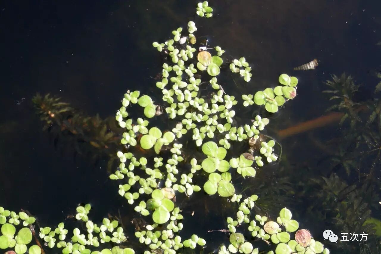 Schleiden,浮萍科紫萍属),叶状体(注意不是叶)更大更圆钝的可能就是它。乍看模样差不多,关键的区别是:浮萍只有一条根,而紫萍有一束根。当时我担心一头栽到水里,没有伸手捞出来看,反正不是浮萍就是紫萍。