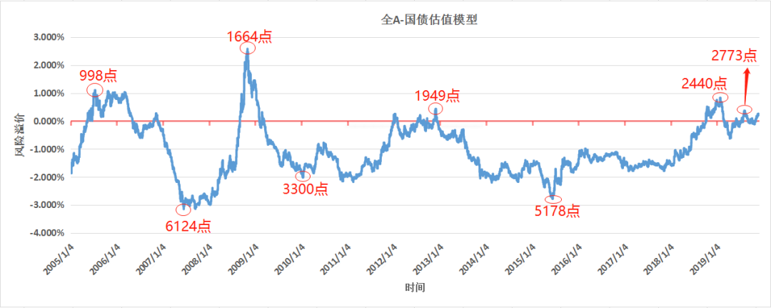 这个全A-国债估值模型可以辅助我们了解当前市场的估值。