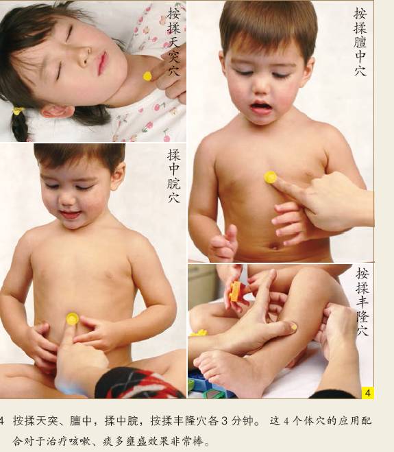 咳嗽中期有痰,用的按揉掌小横纹,运内八卦,按揉天突,膻中,中脘,丰隆每个穴位3-5分钟。