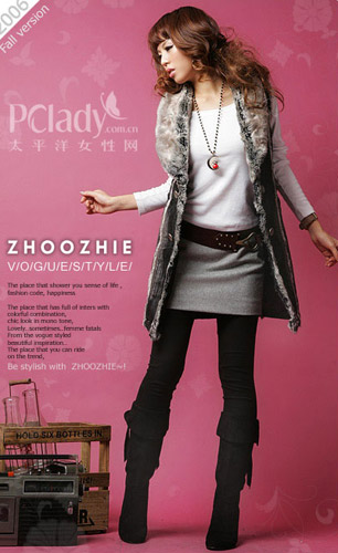 利用颜色取胜,与做旧牛仔短裙、长统靴搭配,最大限度散发性感女人味。