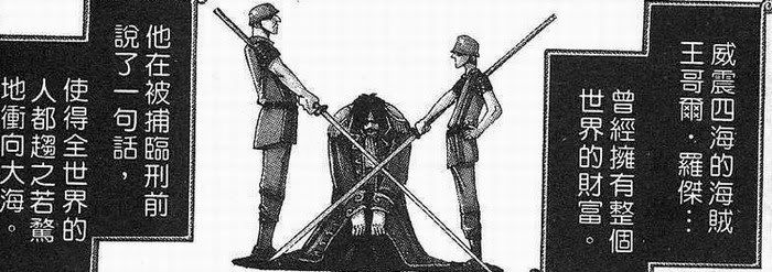 海图历1500年(22年前) 海贼王哥尔·D·罗杰被处死于东海的小镇(后称为罗格镇),揭开了大海贼时代的序幕,为后世所传诵的名字和传奇开始走上历史的舞台。伟大航路的七水之都,号称世界第一船匠的鱼人汤姆因制造罗杰的船被判死刑。因其提出海列车的构想被给予十年实现的时间。卡提·伏拉姆12岁,冰山16岁。