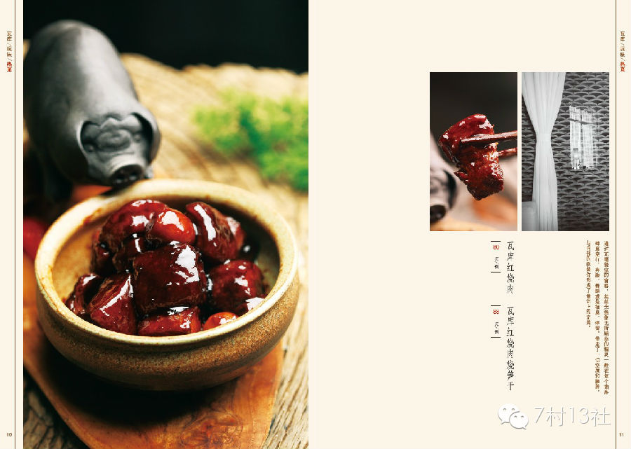 瓦库每个物、每处景都触动我的情愫,注定这是一次愉快的设计体验:我们确定摄影上营造菜品朴素氛围;配以短小隽永,田园诗画的文字;加入瓦库最具代表性的建筑、装饰图片元素;材料上选用粗麻布、木枝条、麻绳的质朴风物;形式上以简洁手工线装装帧;试图通过设计艺术的感染力创造视觉上的美感和传达瓦库自然质朴、本真纯味的文化感受。