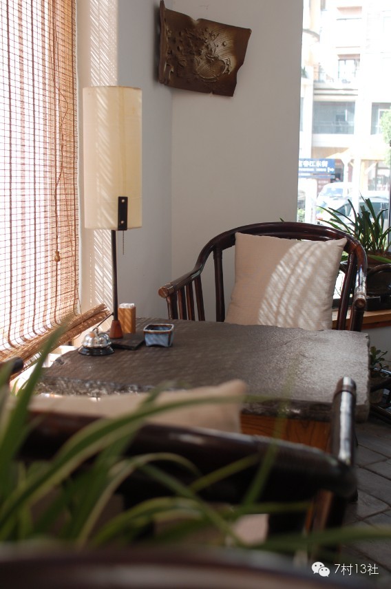 瓦库让我们回到了家园,慢行其中:开花或不开花的绿植随处可见,粗糙的毛坯石墙,倚墙而立的垒瓦,有序无序散放的片瓦,陈列的老家具,沉积着历史的画布,桌下灰白的石槽,桌旁磨得发亮的木桩,处处都是纯朴的印迹,散发着曾经的气息;白色的旋梯把我们带上二楼,几处天井,其中一处还泊了一叶木舟,小猫咪玩耍于上,鲜活着这个凡世之外的空间;每个厅堂都有窗,让阳光、空气悄悄进来,与坐在舒适的座椅上的我们,细细聆听瓦讲述时间的故事;与茶、饭的结合,赋予了瓦库新的含义,喝茶、品味、聊天,适宜而聚、栖息而居……