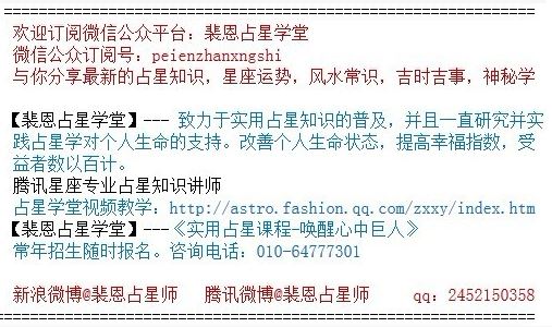 新的技艺,而这门技艺会成为你未来安身立命的法宝,而且不久的将来你能够大派用场。你的体力和精力将要面临很大的考验。合理的分配时间,有计划有规律的生活和工作是这段时间需要刻意要求自己的。上半年你潜心修炼,下半年华丽转身。部分狮子座人要注意交通出行安全。