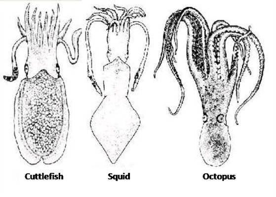 上述三者中,比较而言,通常鱿鱼肉比墨鱼薄,且味香而鲜美,但是南美产的巨鱿其大小可比人类,肉质厚并且带有酸涩味。而章鱼肉比鱿鱼和墨鱼更不易咬断。章鱼/八爪鱼