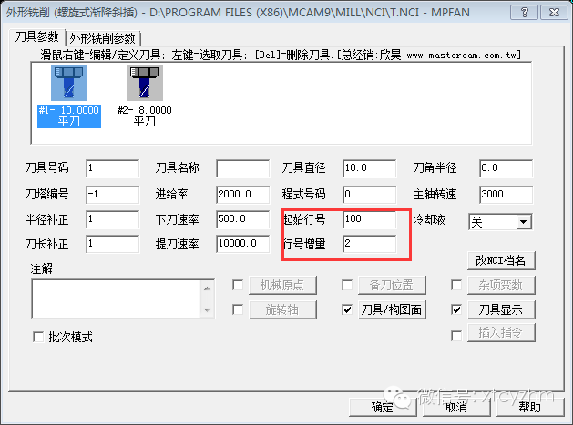 .通过定义起始行号和行号增量的数据来实现,但这样如果有多条刀路的话每一条都需要定义好,可以从刀路模板定义,就不用每次编程时去修改。