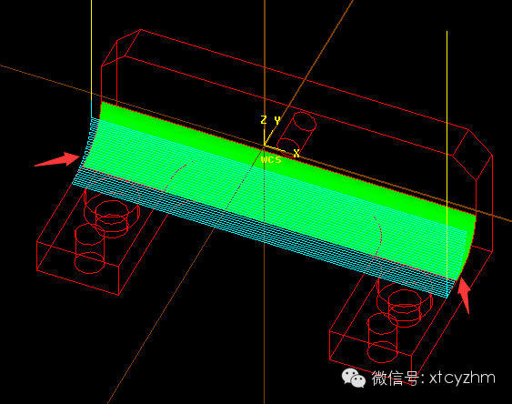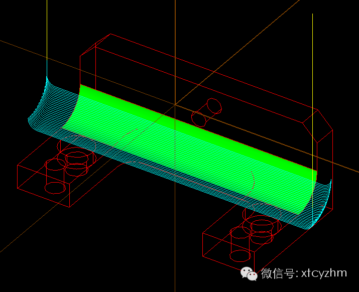 这里我以图示设置的参数为来出刀路(默认的都是0)作示范。可以看到比不设置延伸值的刀路不一样,在两端延长了并且带有圆弧。圆弧刀路在这里就没有必要了,这里设置参数示范给大家看,讲解这个参数。大家在工作过程中注意一下。