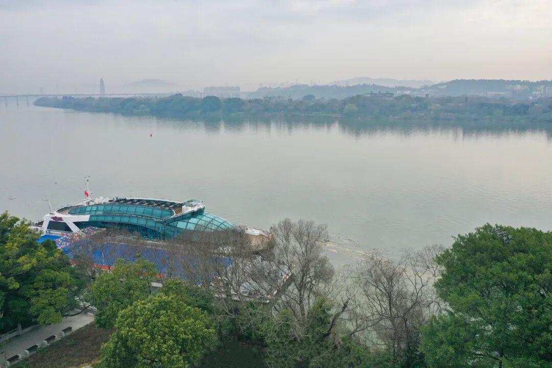 乘坐这艘船,将会游览赣江黄金水道百舸争流的繁荣景象,从龟角尾码头出发,途经八境台、和谐钟塔、白塔和赣州大桥等标志性建筑。