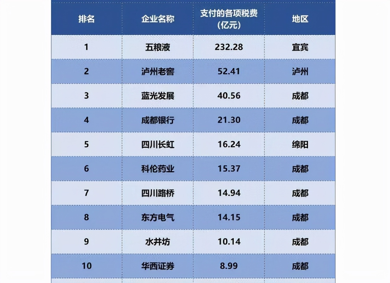 四川企业纳税排名:力压新希望、长虹,第一名年纳税232.28亿