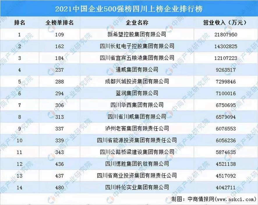 根据2021年四川企业上榜500强的情况来看,新希望集团还是稳居第一位的,一年的营收达到2180亿。