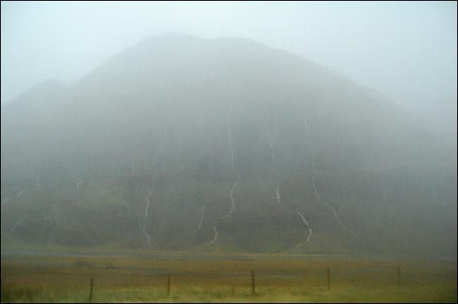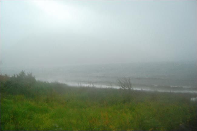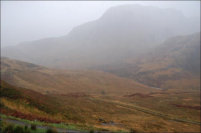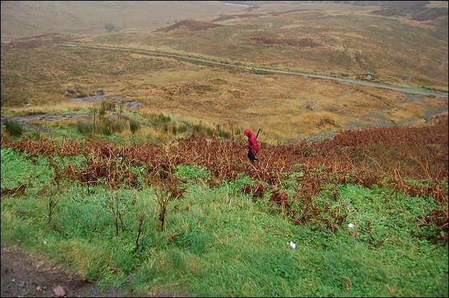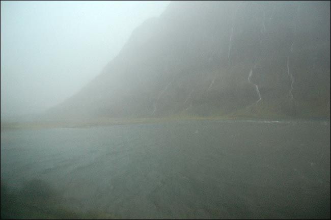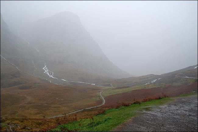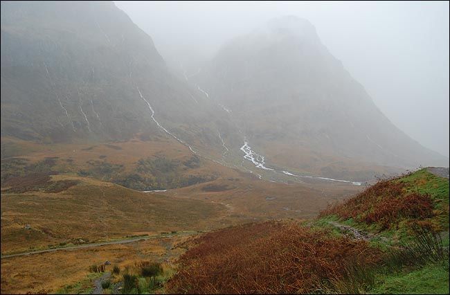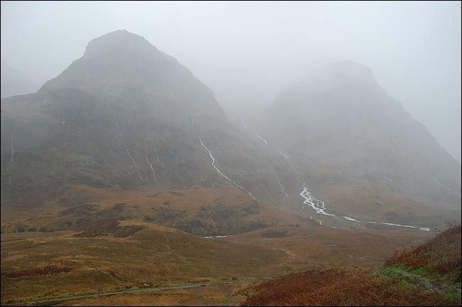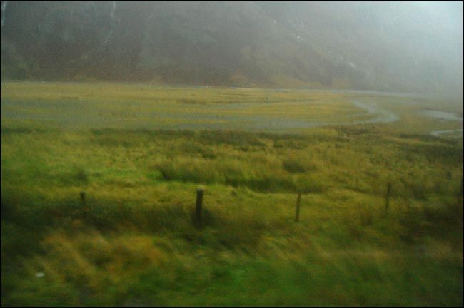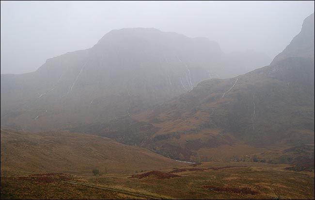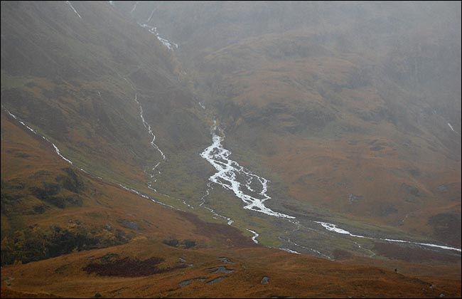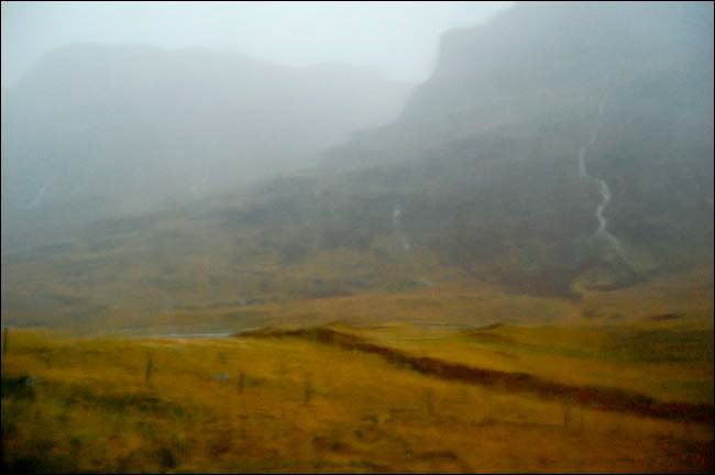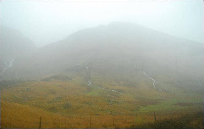 弥漫雾气中的山脉虽然高耸连绵,但线条圆润,估计这就是它们抵御无尽大风的策略,一条条溪流各自从山上开辟出自己的路径蜿蜒而下,各种草本植物欢快地生长着,舞动着,虽然已近严冬,虽然很快就要死去之后从头再来。