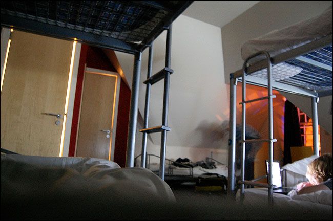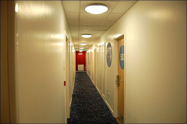 办好入住拿着钥匙去房间,这也是俺在英国住过的唯一一家有电梯的旅馆。很多精力过剩的孩子在楼道里来回追跑着,貌似他们来自同一个旅行团。来到507房间,插卡开门的瞬间俺想,是不是都住满了呢?里面也吵吵闹闹的?结果——推开门,里面空无一人。几个床位倒是有用过的痕迹,看来出去玩的人还没回来。准备简单整理下行李,这才发现床头的小灯是坏的,好在俺带了手电筒,就不去找人修了,还是赶快出去找吃的要紧。