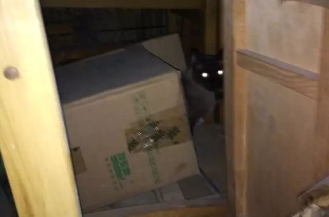 3月2日夜里2点去看,暹罗正在纸箱窝里。其实满可以绕到后面来个瓮中捉鳖,但不知它的性情如何,万一激烈反抗,这个纸箱能不能撑得住很成问题。想来想去,还是晚些时候设诱捕笼吧。