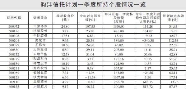 具体看,昀沣证券投资集合资金信托计划在一季度新进13家公司股票,它们分别为:三聚环保[0.98%