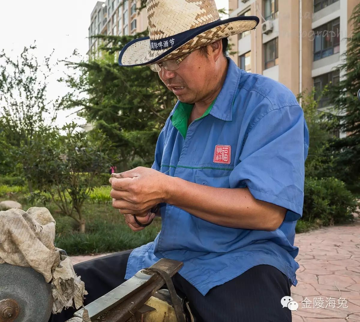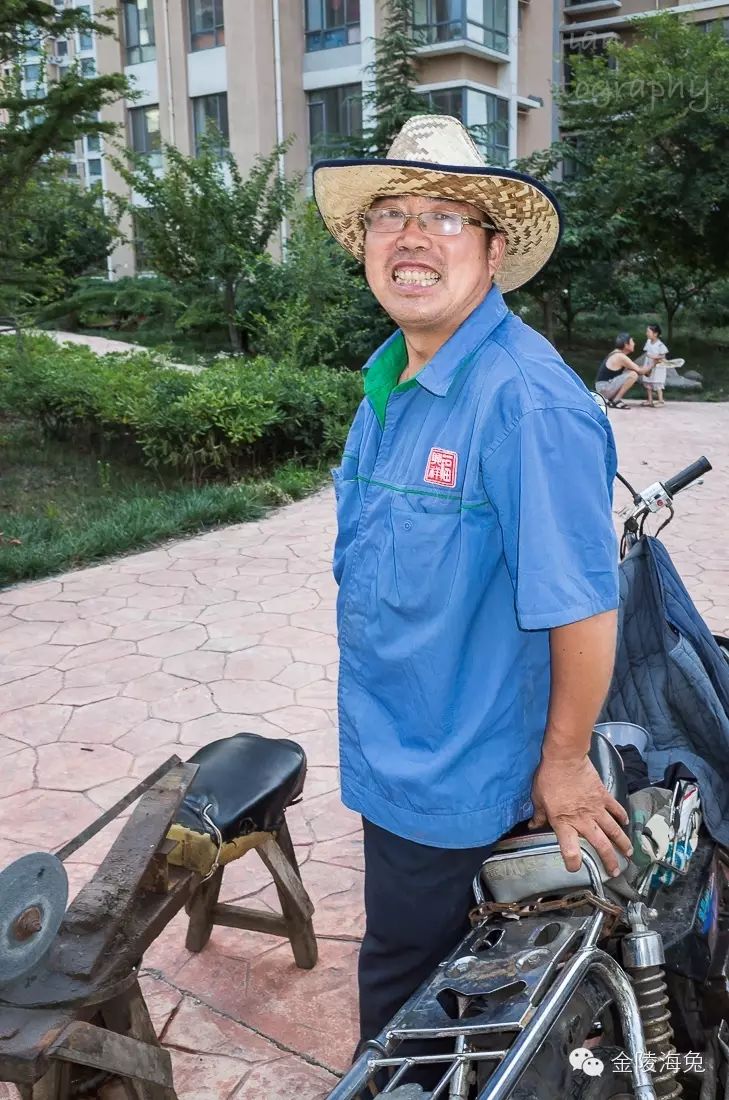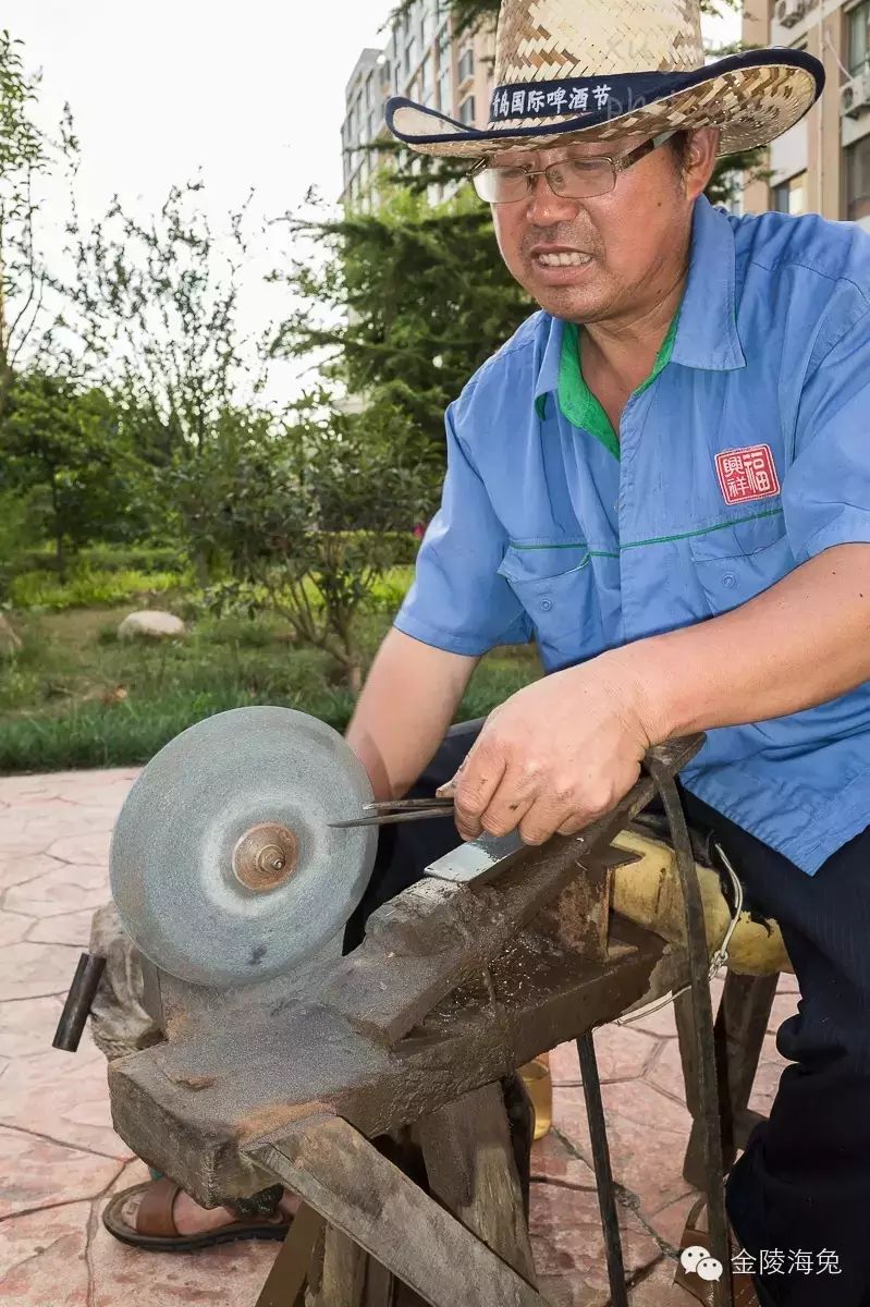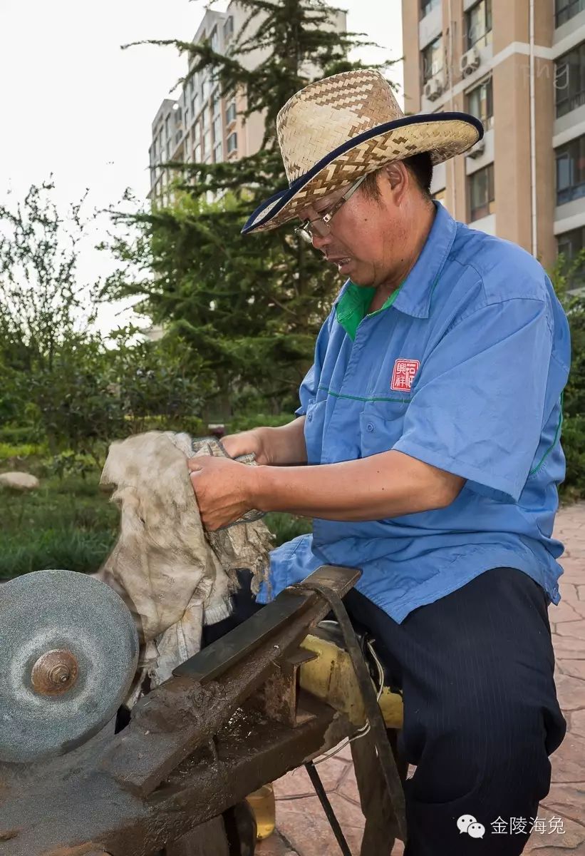 家里的农活不忙的时候,他就到青岛来磨刀挣钱。家里交给老伴儿来操持(还算是分居两地呢。)