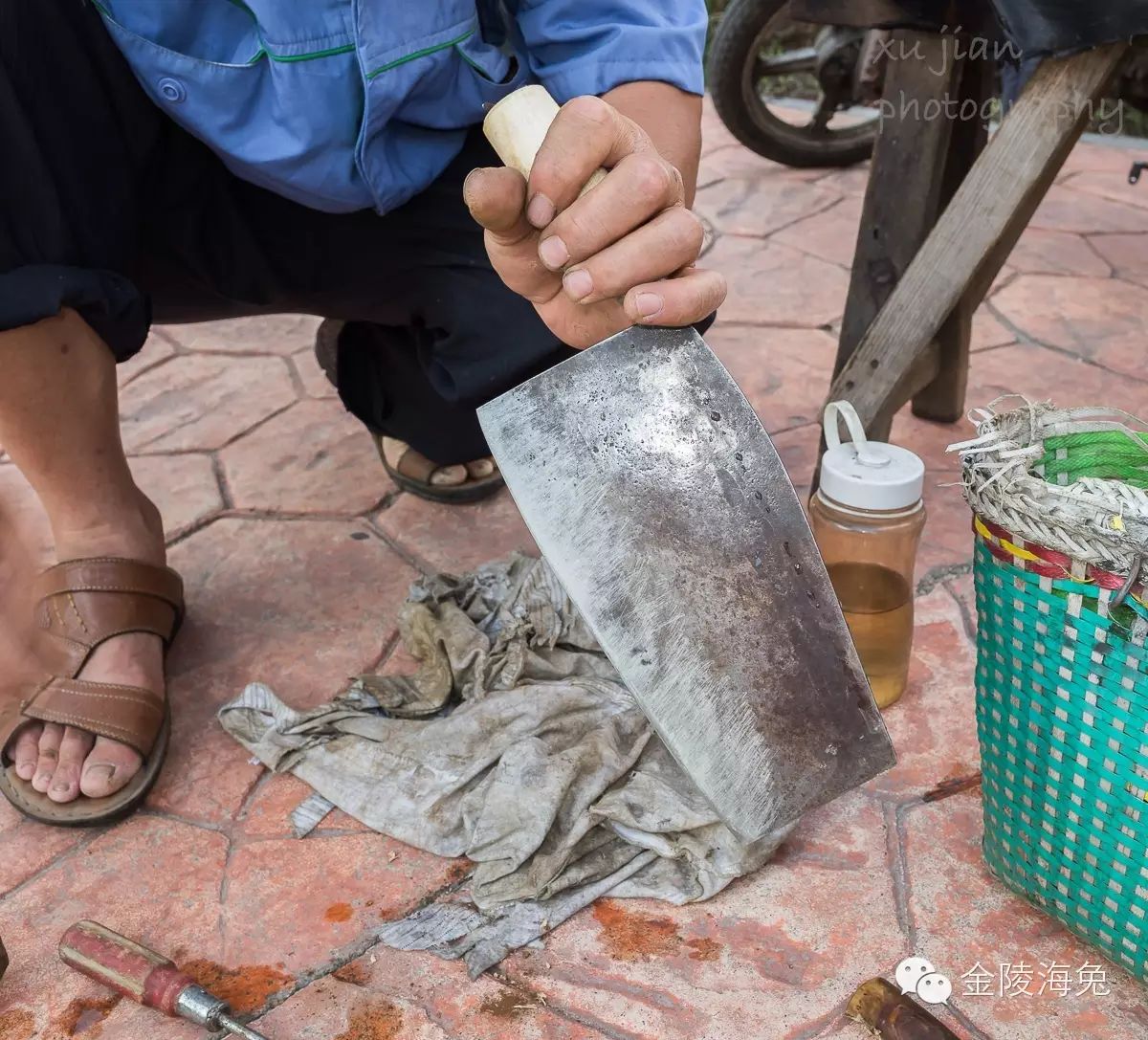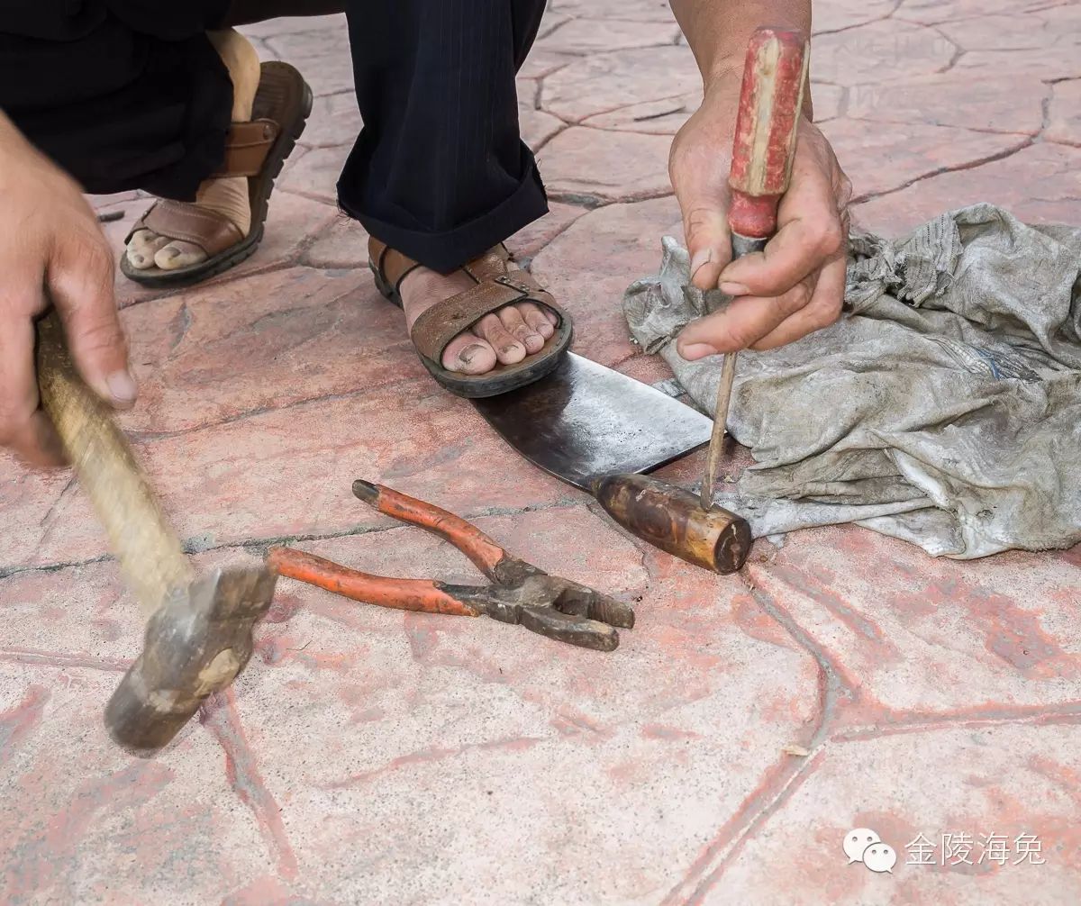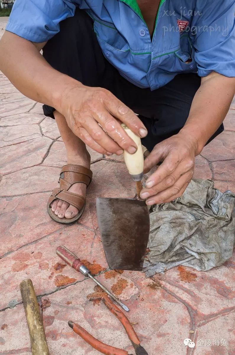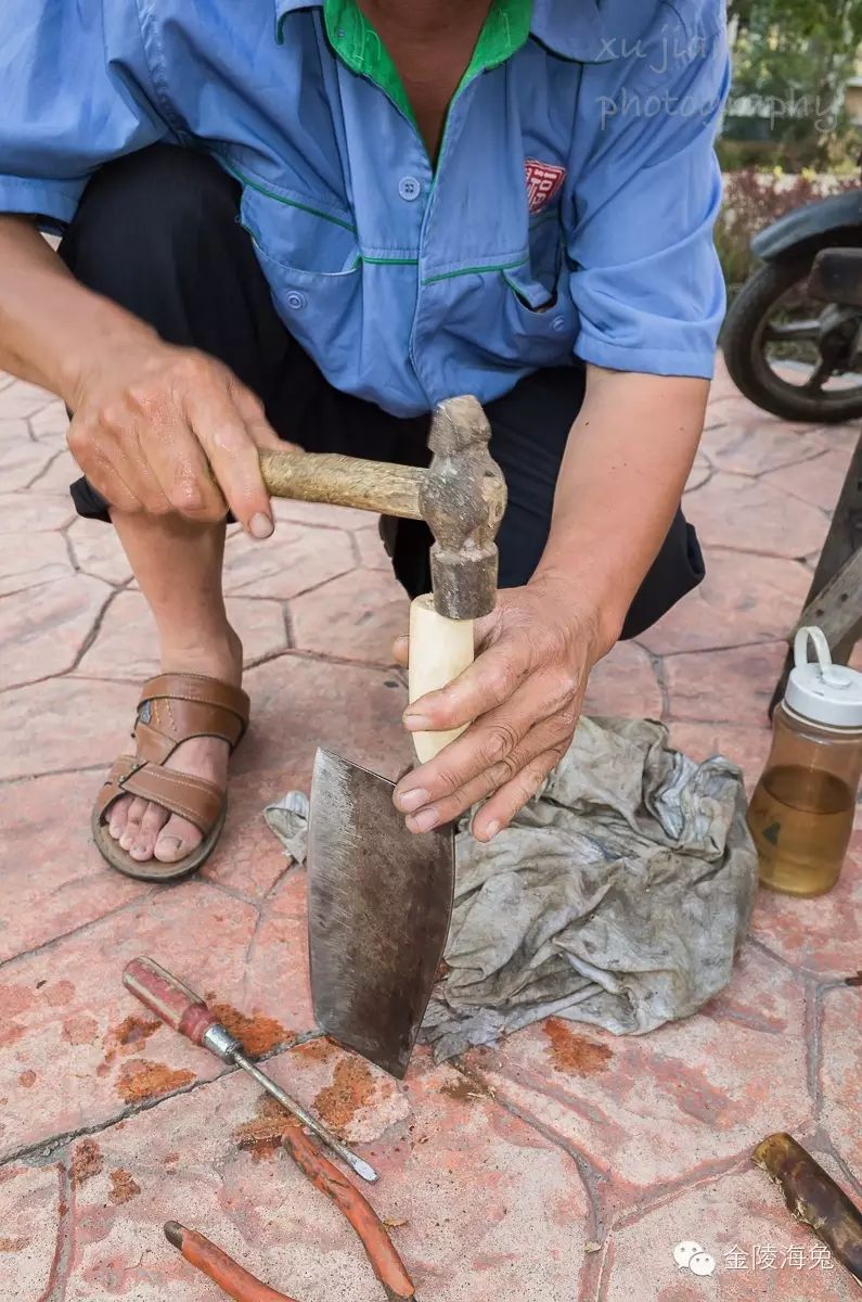这时候,有人拿了一把菜刀,要换一下刀把。我非常好奇,哦!磨刀人还有这项“业务”?
