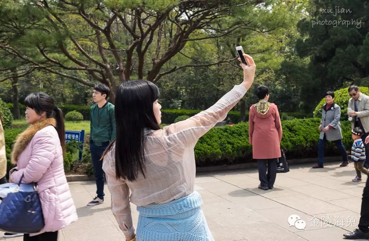 这样的自拍场景虽然过时了,但在旅游景点也常常能够看到的。