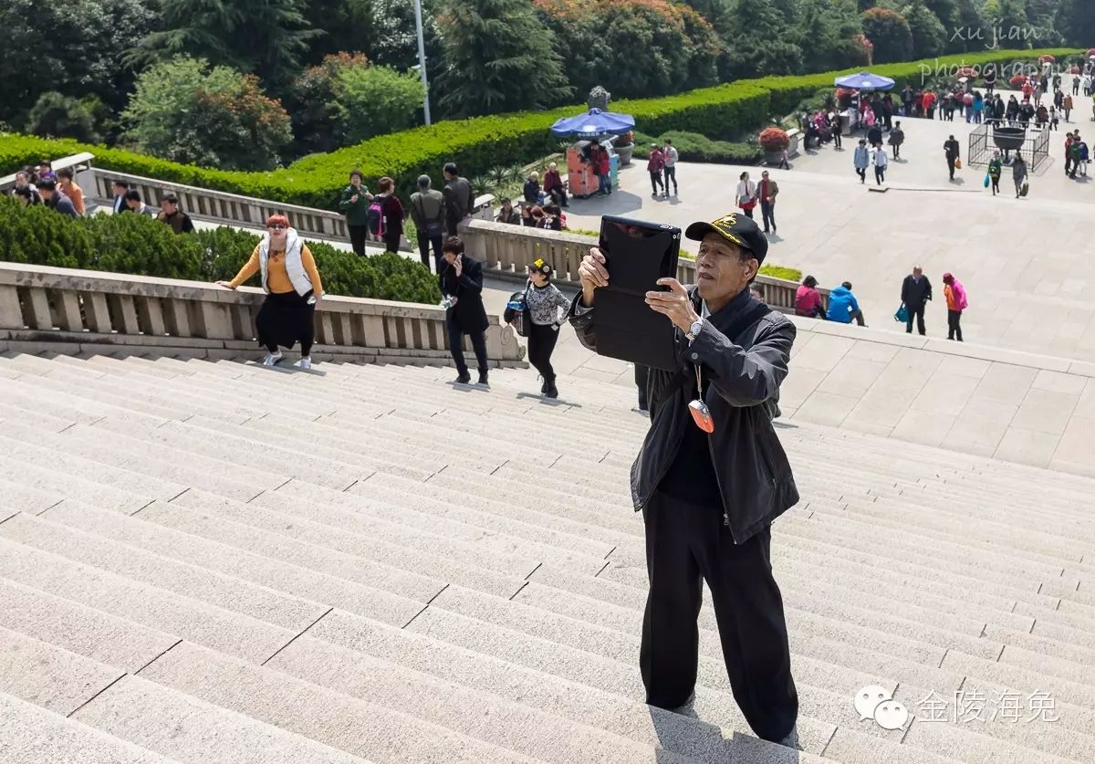 在中山陵石阶最高处,我刚刚拍完她俩的这一张,紧接着两位美女又调过180度,让我又抓拍了一张。