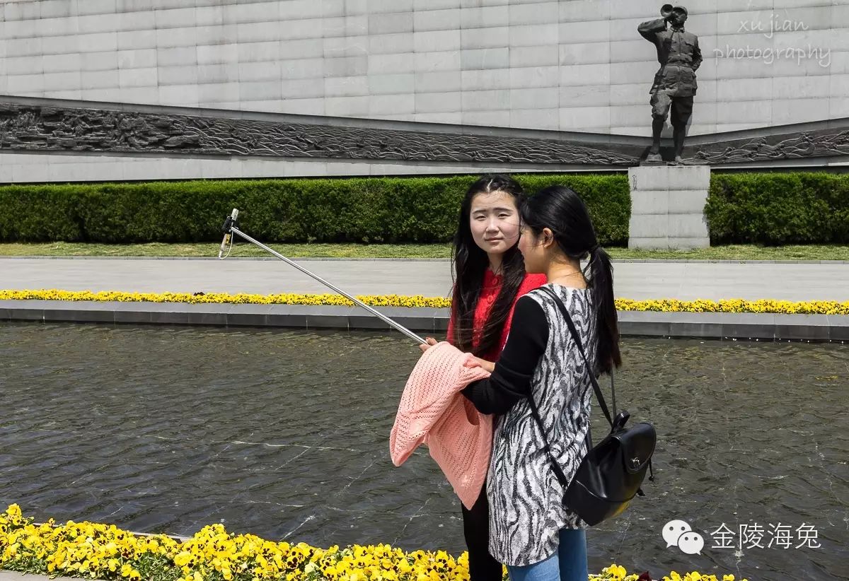 当我的镜头刚刚对准她俩的时候,被其中的一位姑娘发现了。这个纪念馆里还没有禁止使用自拍杆。