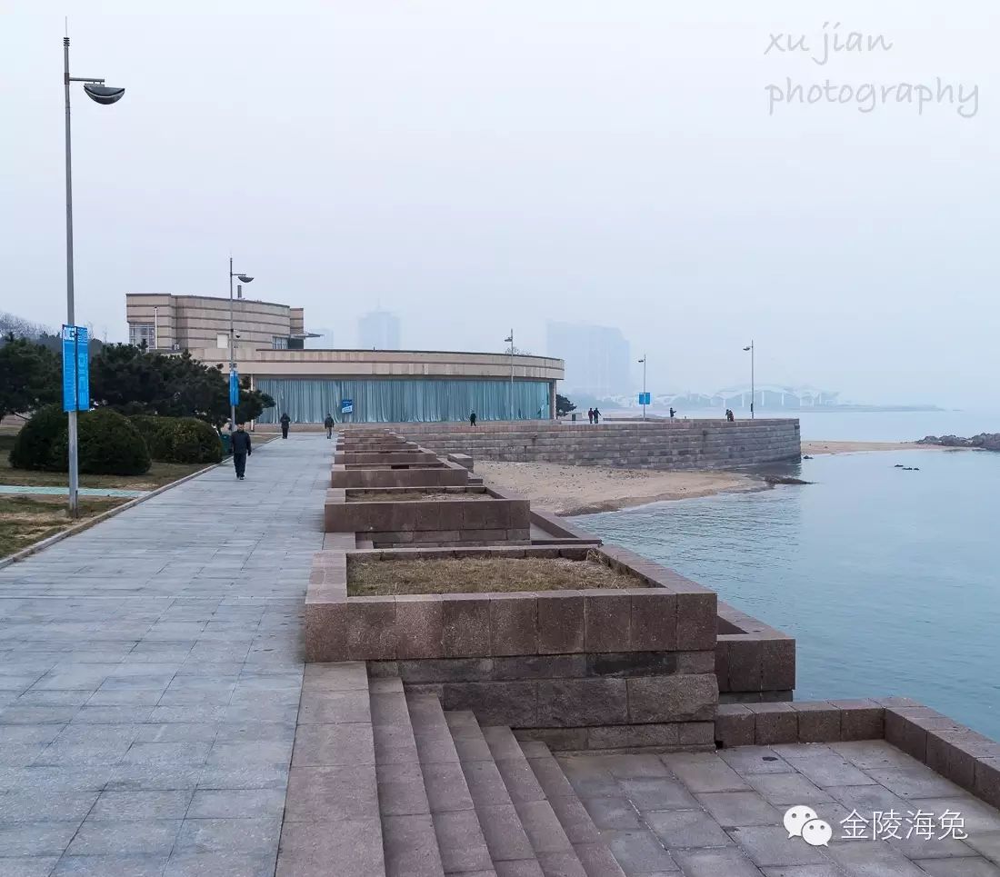 透过照片左边的雕塑,仔细看远处,那个不知名的小岛当年清晰可见。而今天的青岛,雾霾天气已经日趋严重。哈,跑题啦,拉回来。