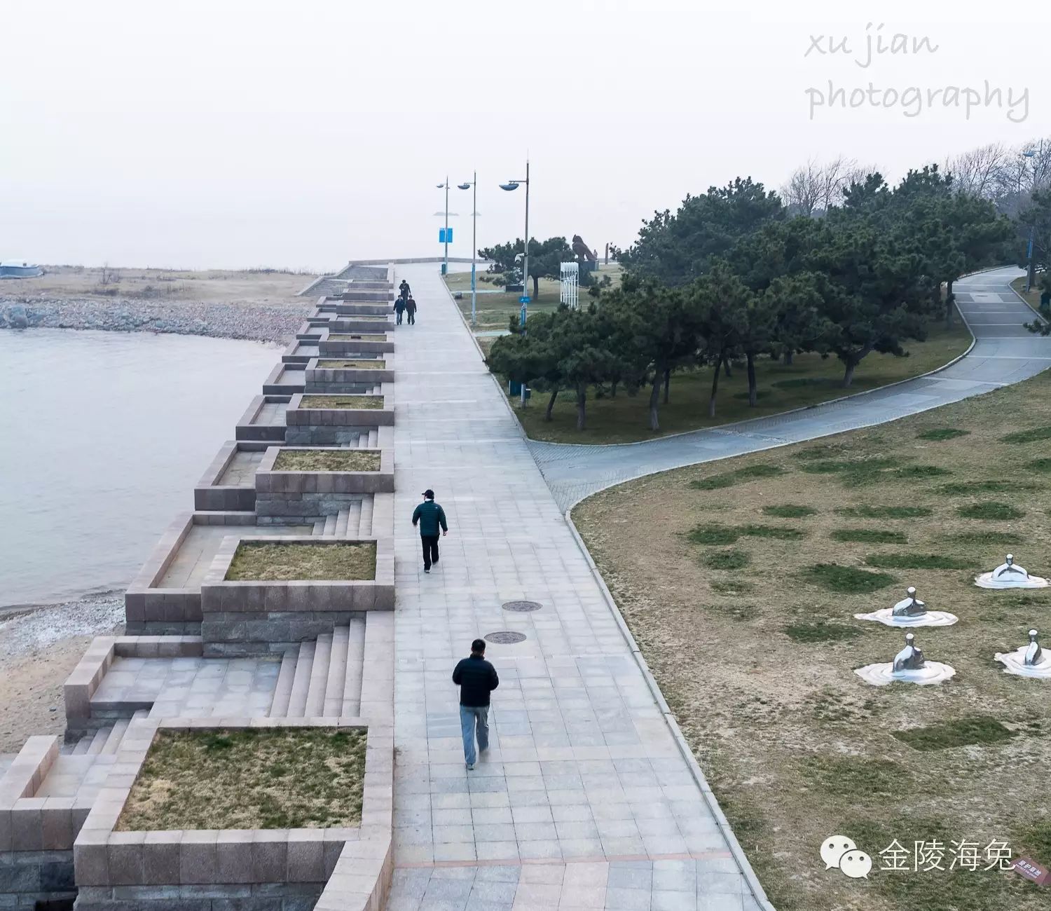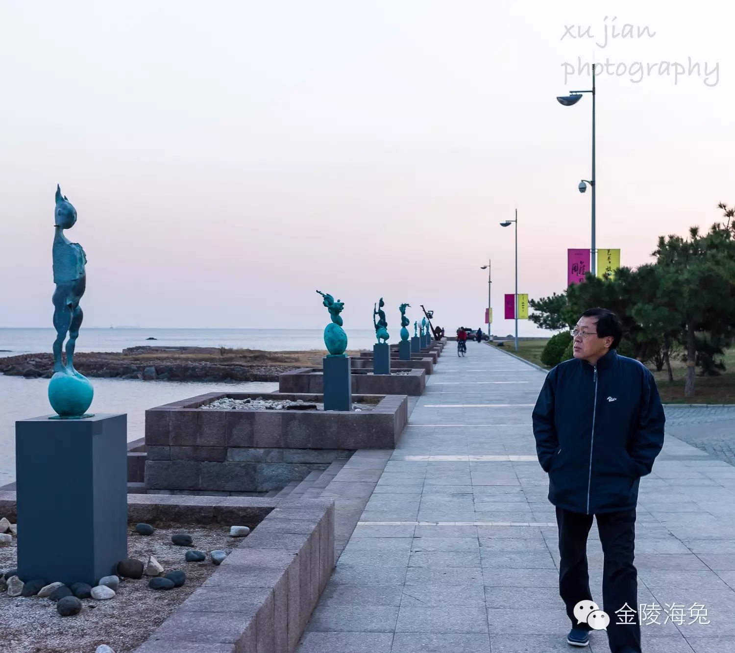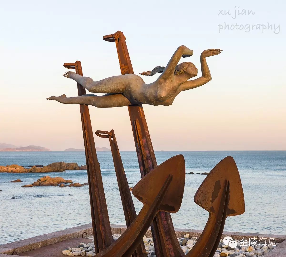 那是2012年的11月份,冬日黄昏,寒风凛冽,大潮没礁,雕塑园里静悄悄的,我沿着海边一边驻足观赏,一边拍下了她们的“倩影”......
