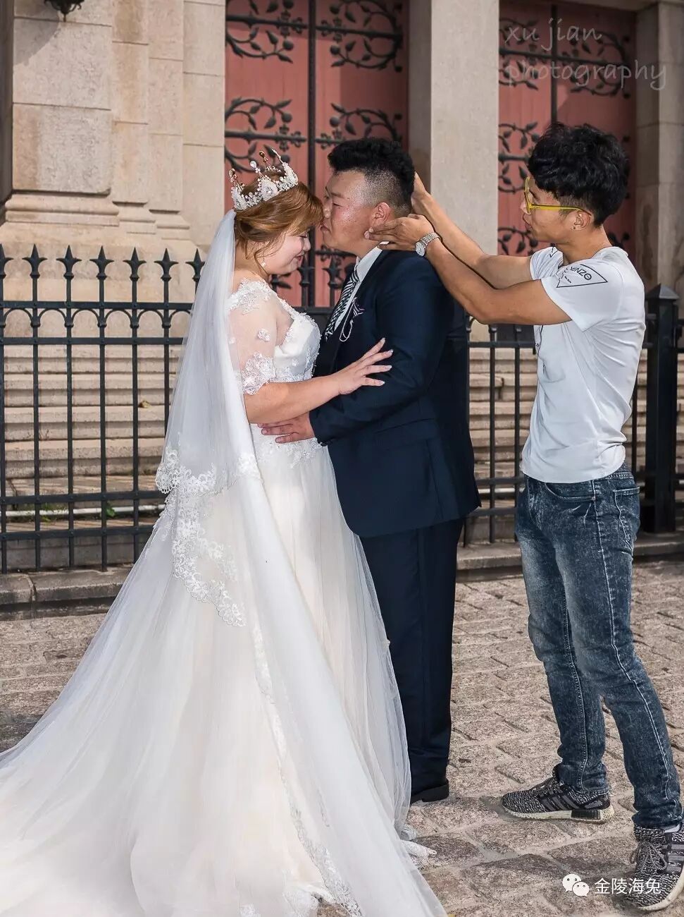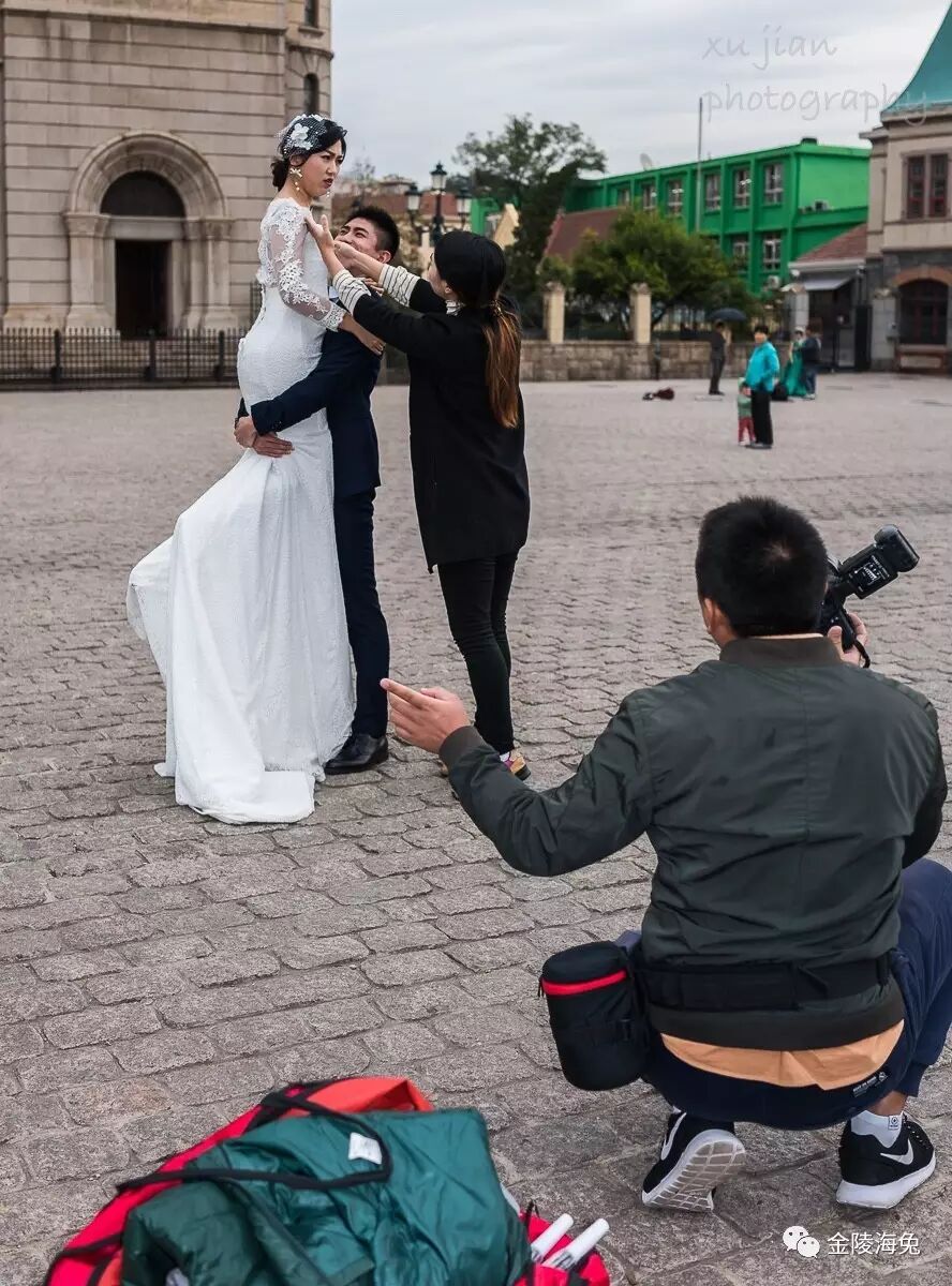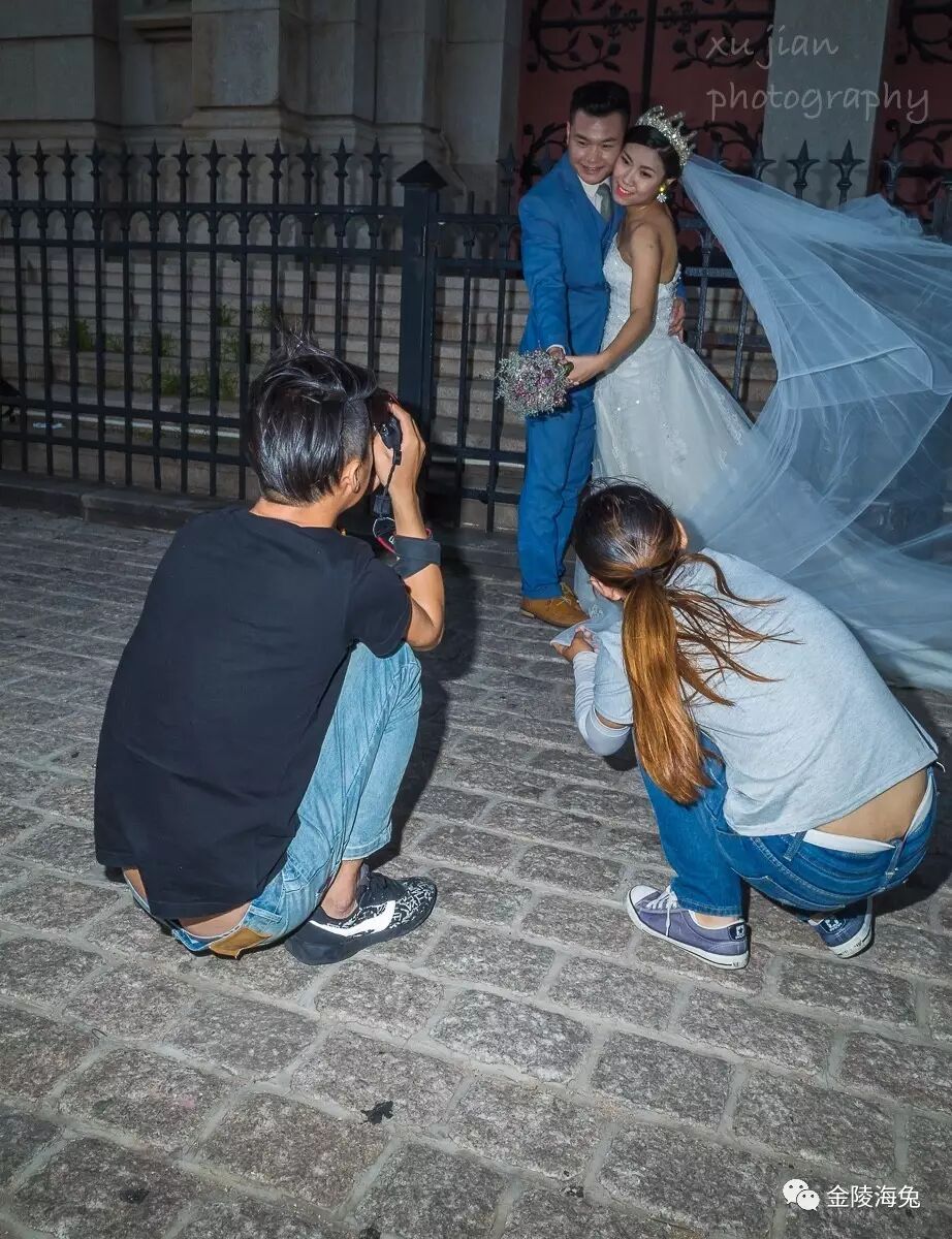 上海有位朋友看了这张照片说,似乎这个POSE在如今婚纱中已经有些过时了吧。你看摄影助理的动作,你看那对新人的尴尬,真是挺有意思的。