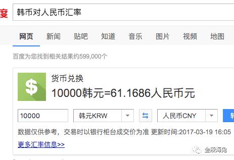不过今天发图文的时候,我又查了一下汇率,似乎韩币升值了,见下面的截图:
