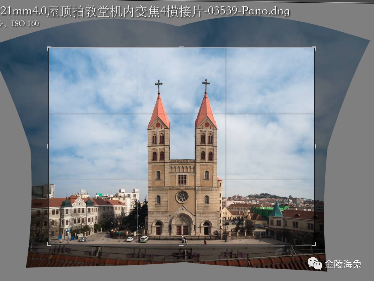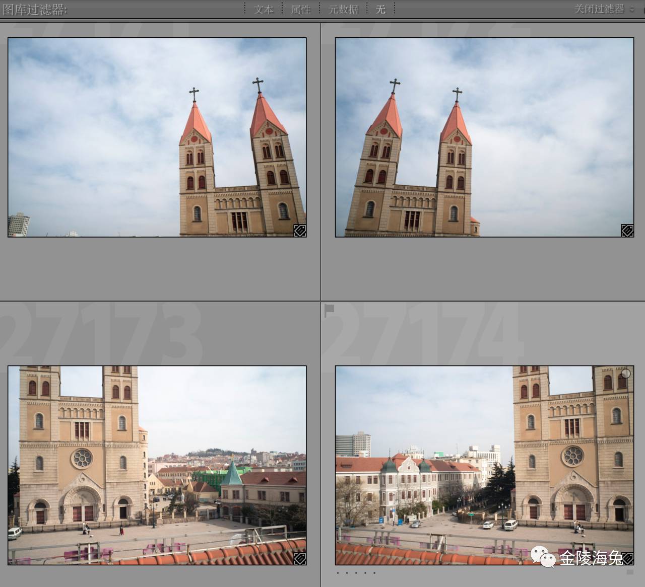 而大教堂可以用4张横接片来拍它的全貌。看上图所示,这是原始的4张照片,即左上一张,右上一张,左下一张,右下一张,然后到LIGHTROOM里去接片。