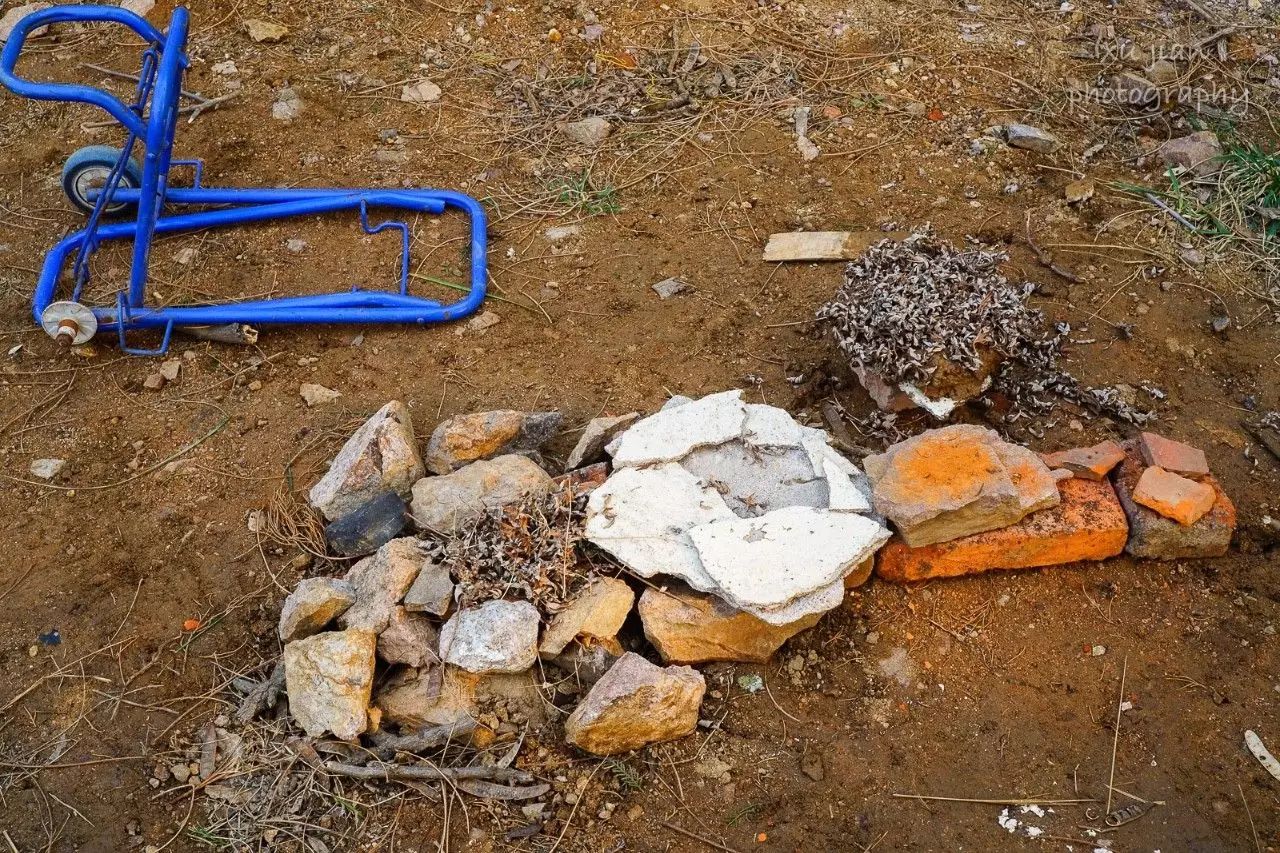 随着几声呵斥,其中一个孩子的爸爸不知道怎么找到了这里,他不由分说地“叫停”了“施工”。望着孩子们不情愿地拎起沉重的书包而散去的背影,我不能再去追拍他们,只好对着这个“烂尾楼”和那个被人废弃的蓝色小拉车,留下遗憾和思考。