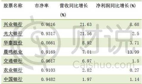 面对破净股票的估值洼地,寻找有业绩支撑的股票不失为一个好的投资策略。根据2015年半年报,在目前的破净股中,营收和净利润同比增长均为正的股票有: