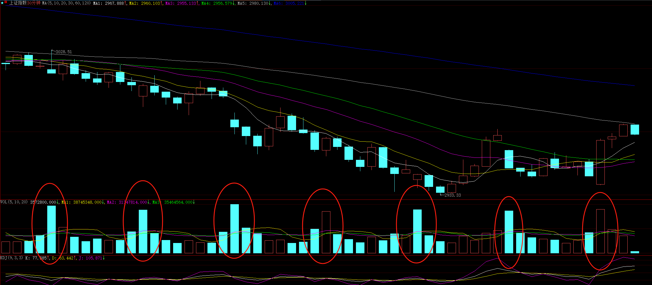 操作上,短线依然不适合追高,半年线3000点附近由此前的心理支撑位变成了心理阻力位,后市日线上真正的右侧机会出现的标志,是沪指突破短期均线系统当中处于最上方的30天均线位3056点,放量拿下这个点位,才表明大盘由空头市场转向多头市场。