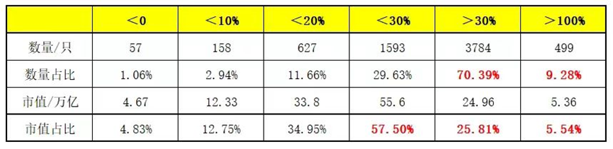 924以来,亏损的股票只有57只,合计市值4.67万亿!涨幅10%以内的股票158只,合计市值12.3万亿!涨幅不足20%的股票有627只,合计市值33.8万亿!涨幅不足30%的股票有1593只,市值合计55.6万亿!