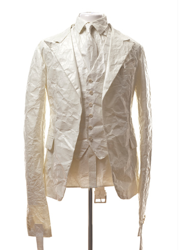 2009年,他在纽约做了个展览,呈现了一组雕塑作品题为《改造 Alteration》。他用日本纸,重新解构了传统男装,用纸张来模拟羊毛、棉、华达呢等面料的效果,并将边缘磨损,并作起皱处理,中间当然也隐藏了不少他所习惯借取的超人、蝙蝠侠的超级英雄形象。用Greg自己的话来说:“用重新定义的材料来挑战传统男装的比例。”当然,所有作品都是由他自己亲手缝制的。显然,这组作品在艺术界的反响不大,却让参观者扼腕叹息——要是这些独特的衣物能穿在身上就好了。于是,他便顺理成章地开启了自己的服装线。